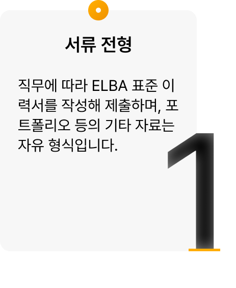 직무에 따라 ELBA 표준 이력서를 작성해 제출하며, 포트폴리오 등의 기타 자료는 자유 형식입니다.